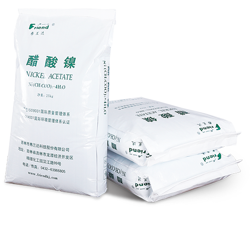 吉林市弗蘭達科技股份有限公司成立于2004年,位于吉林省吉林市龍潭經濟開發區精細化工園漢江路99號,注冊資本1000萬元,占地2萬平方米。專業從事醋酸鎳、氨基磺酸鎳、堿式碳酸鎳、氨基磺酸鈷等系列產品的研發與生產。產品均通過歐盟Reach和Rohs認證,生產制造過程通過了ISO9001質量管理和ISO14001環境管理體系認證,擁有自主進出口經營權。本著追求卓越、回報社會的企業宗旨,本著誠信擔當、品質卓越、激情創新、和諧共贏的核心價值觀,為客戶提供優質服務,做行業知名品牌。產品主要應用領域:鋁合金陽極氧化、著色、封閉劑行業;精密電鍍、電子電鍍行業;石油化工、機械行業的催化劑制造、電鍍主鹽等。